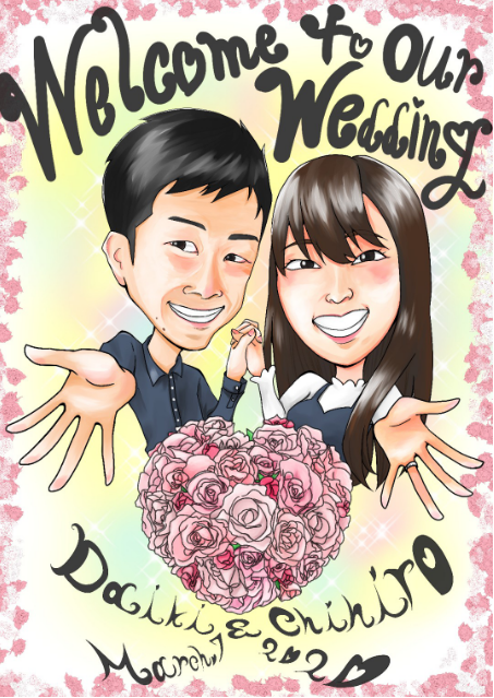 他にも女性に好まれるようなイケメンや似顔絵なども得意で、ウェルカムボードなども手がけています。